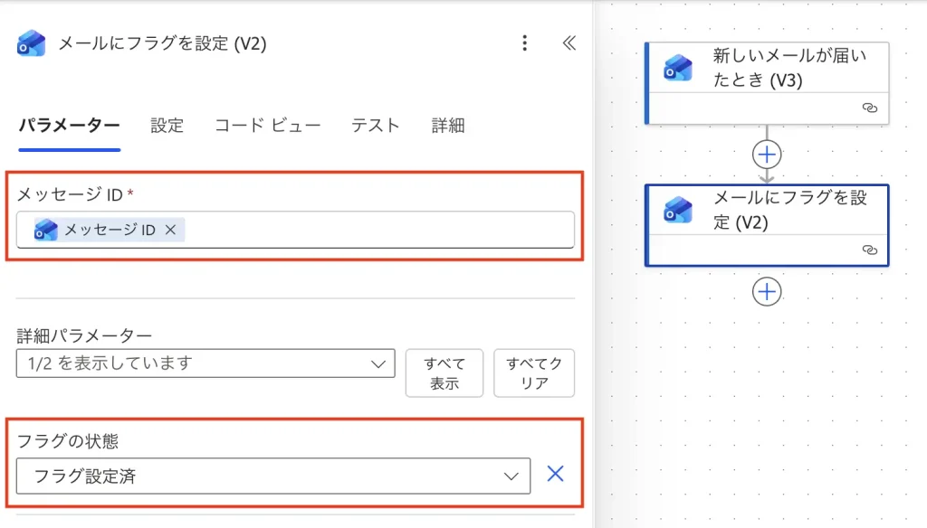 「メールのフラグを設定 (V2)」をクリックすると下記の画面になります。