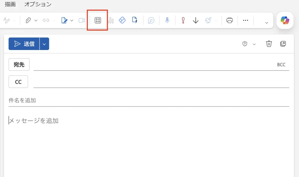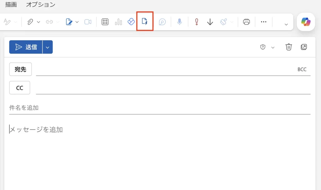 メール作成画面の上部ツールバーに「稲妻のようなアイコン⚡️」があるのでクリックします。